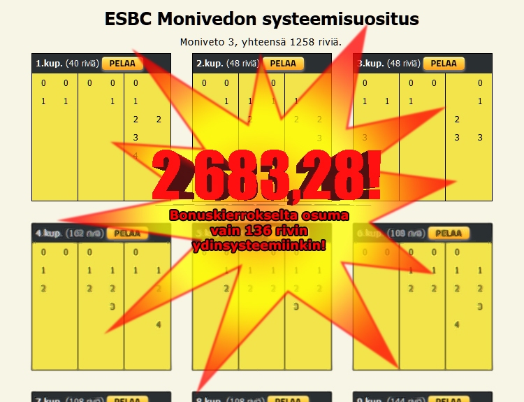 29.5. Veikkausliigan bonuskierros vol 2. ja lunastus vol 2. 2 683,28!